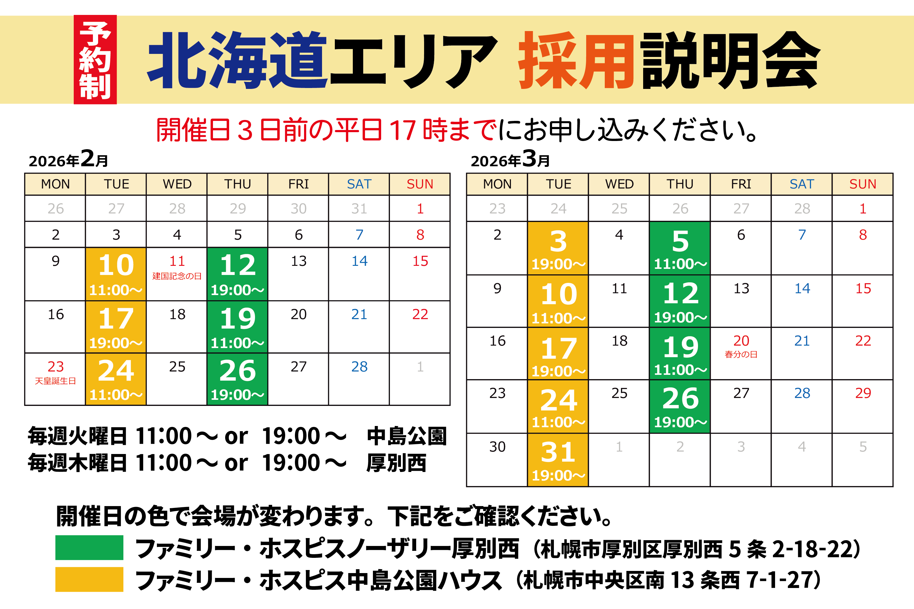 北海道エリアにある下記施設の採用説明会を開催いたします。