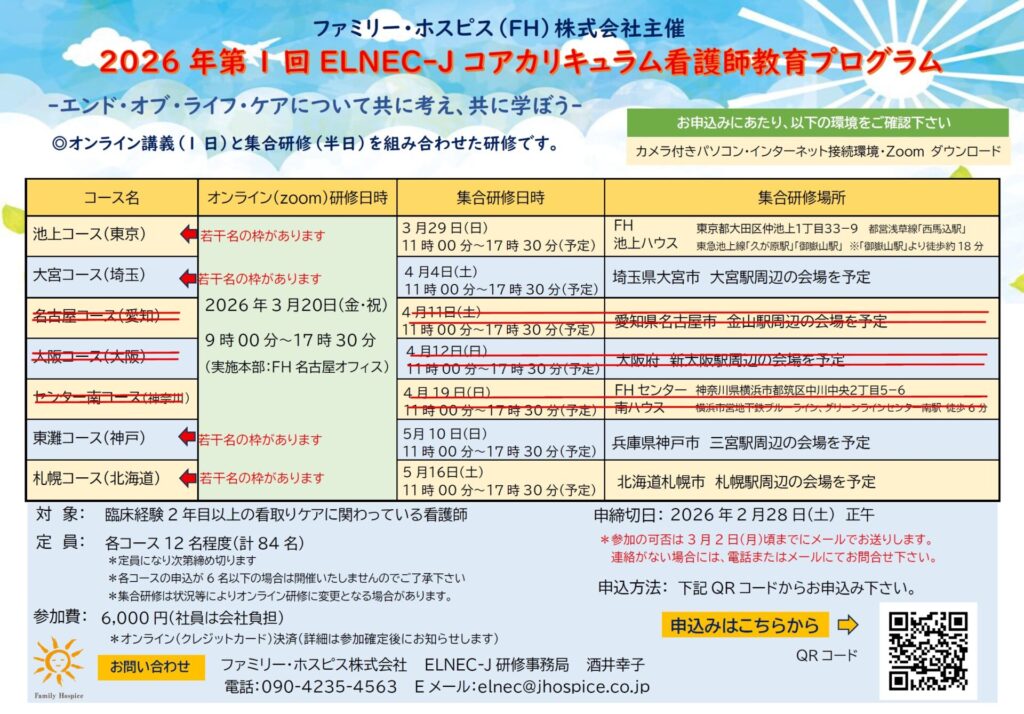 2026年 第1回 ELNEC-Jコアカリキュラム看護師教育プログラム を開催いたします。