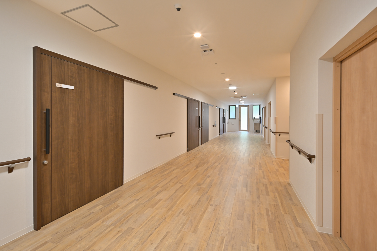 各居室の入り口はベッドも余裕を持って通ることができる幅を確保しています。 -