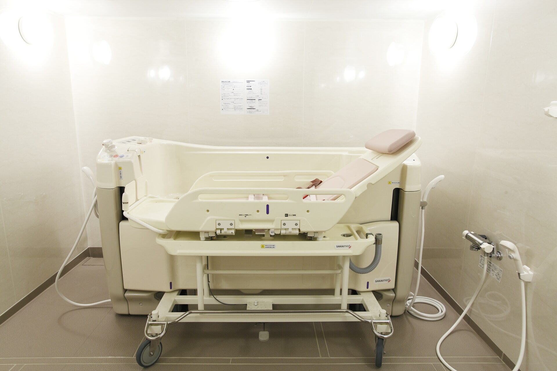 5階の座浴に加え、3階には寝浴も設置してありますので、お身体の状態に合わせて安心して入浴して頂けます。 -
